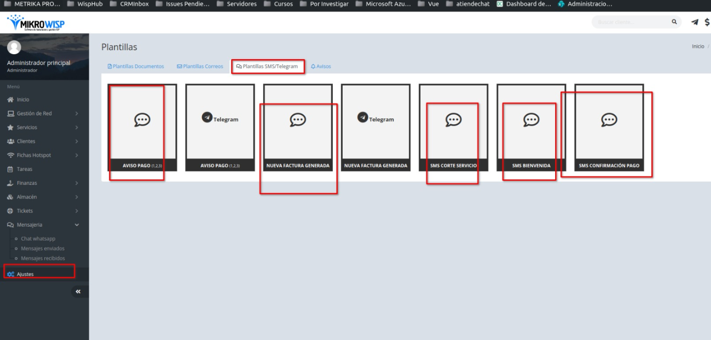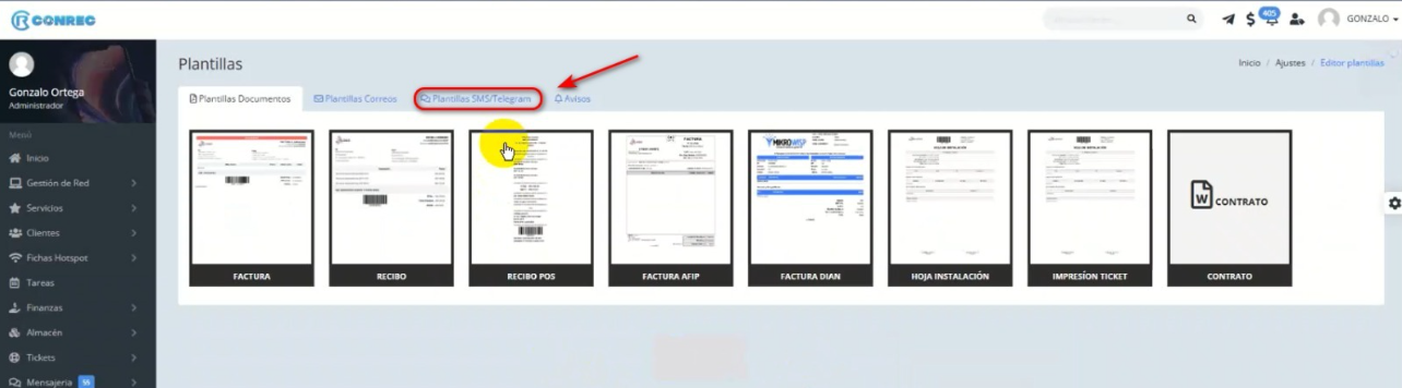 Luego entre a la sección de Plantillas SMS/Telegram.