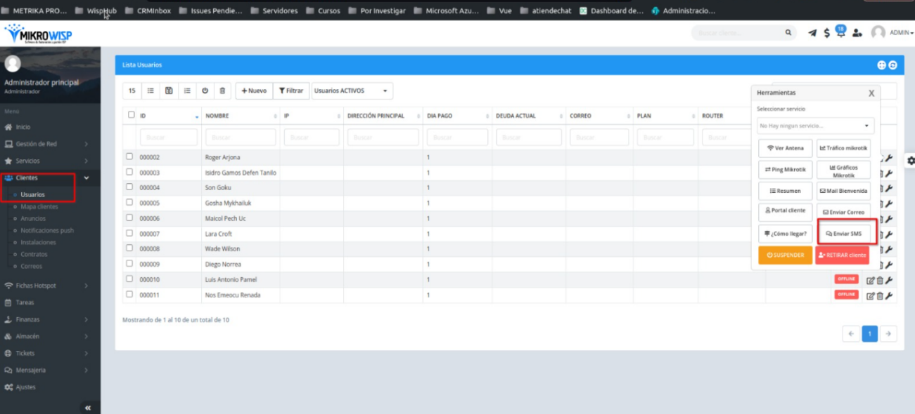 Una vez configurado el gateway, MikroWisp podrá notificar a CRMInbox los mensajes que desee enviar a través de los eventos del sistema.